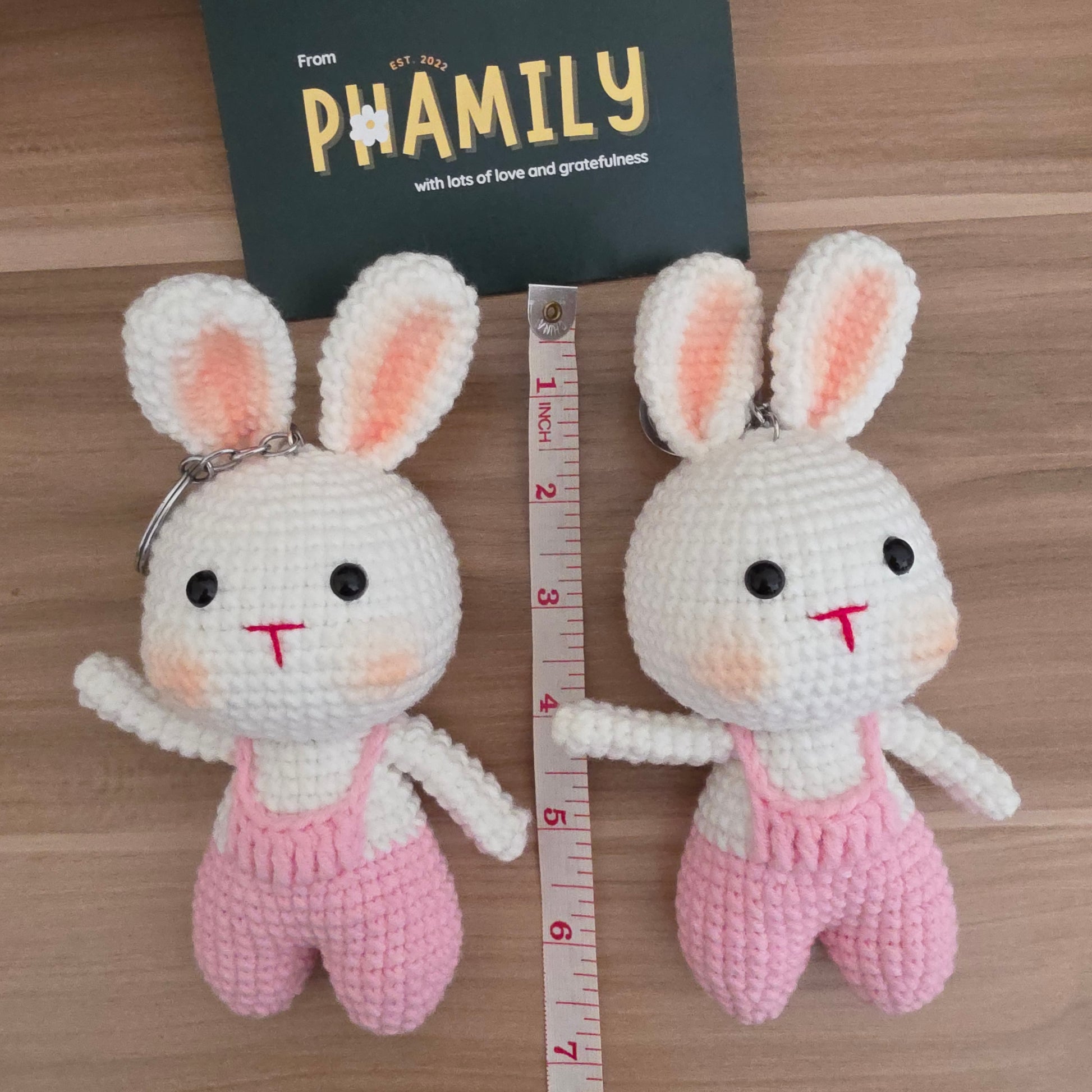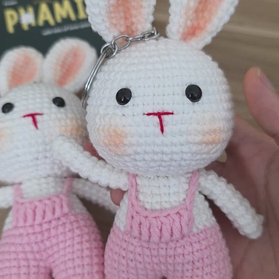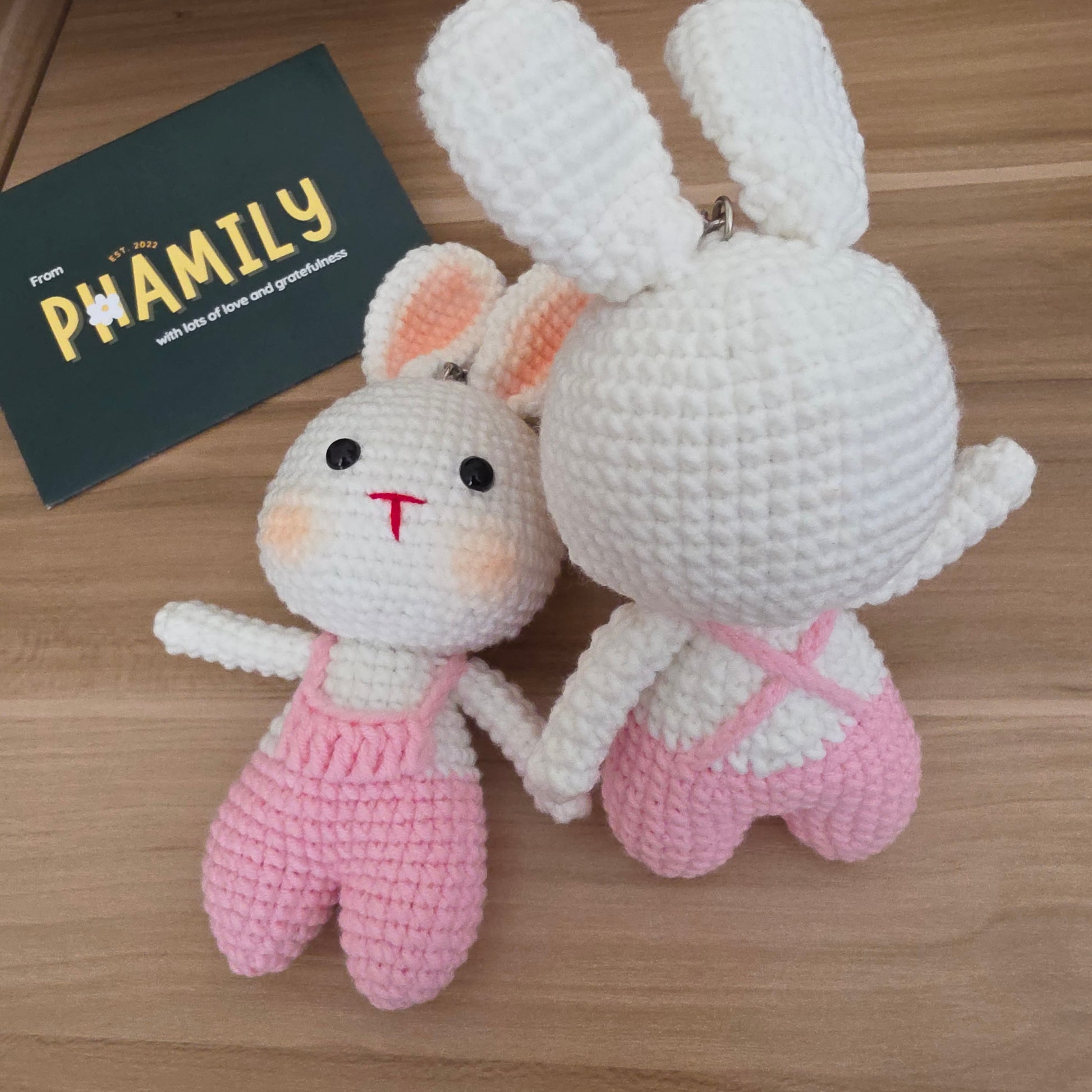 Bunny in Cute Pink Dungarees Amigurumi Crochet Keychain