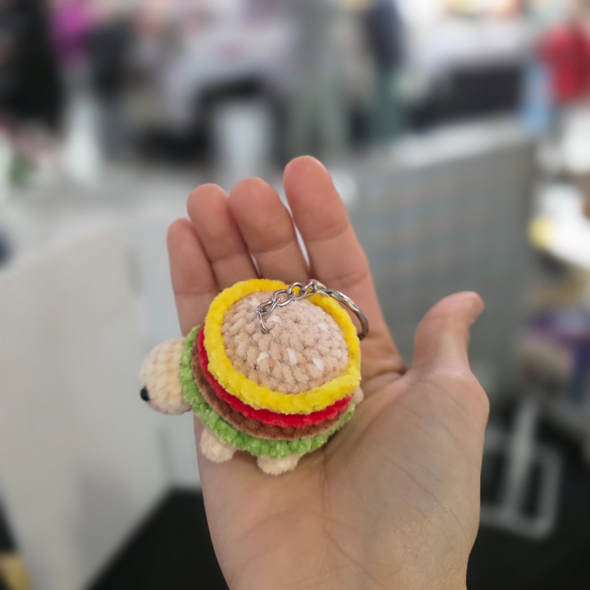 - Materials: velvet yarn, fiberfill, safety eyes, keychain clasps